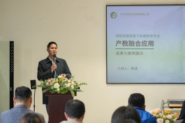 北京绿筑科技有限公司总经理陈成作《绿色低碳背景下的建筑类专业产教融合应用》主旨报告,强调建筑类专业产教融合要紧扣行业需求,注重“共创、共建、共享”,聚焦绿色技术落地与低碳人才共育,并诚邀燕理学子参与绿色建筑技能大赛。