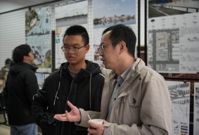 下午论坛移至F101,以“产教融合与合作建筑展”为主题。建筑学院副院长霍达以“翩然绿筑”真实项目为核心,分享如何打破课堂与项目边界,整合360°资源,让学生在方案设计、施工落地中完成知识转化,构建“教学—实践—成果”全过程育人体系,为产教融合提供可落地范本,同时建筑学院师生与参会的企业和设计院共同参观了建筑技术展,感受了超低能耗建筑技术的魅力。