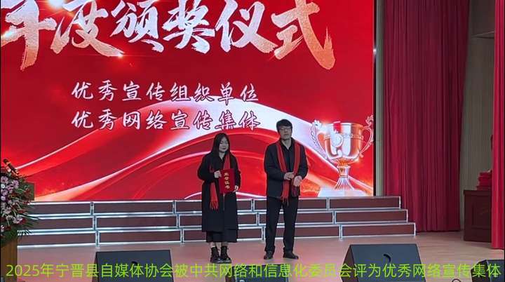 近日,宁晋县自媒体协会2025年度表彰先进大会在宁晋一中演播厅隆重举行。县委宣传部、网信办、社会工作部、民政局等主管部门领导,协会全体会员、获奖代表、中小微企业俱乐部成员及省市媒体嘉宾齐聚一堂,共同见证先进典型受奖荣光,共商自媒体行业赋能县域高质量发展新路径。大会以“党建引领聚合力 赋能县域谱新篇”为主题,全面总结协会年度工作成效,表彰了一批在正能量传播、县域宣传、产业赋能、公益践行等领域表现突出的先进集体与个人。