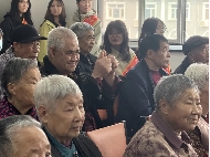 红歌嘹亮颂党恩,温情相伴共安康。活动尾声,全体志愿者与老人们一同齐声唱响《没有共产党就没有新中国》。激昂的旋律回荡在老年公寓的上空,铿锵的歌声凝聚着对党的无限热爱与深情礼赞,将整场活动推向高潮。这首诞生于1943年烽火岁月的经典红歌,镌刻着“没有共产党就没有新中国”的历史真理,也承载着老人们对党的深厚情怀和学子们的爱国赤诚。歌声中,浓浓的爱国情与敬老情紧紧交织,温暖了整个活动现场,也传递出对伟大祖国繁荣昌盛的美好祝愿,对各位长者永沐党恩、福寿安康的诚挚祝福。